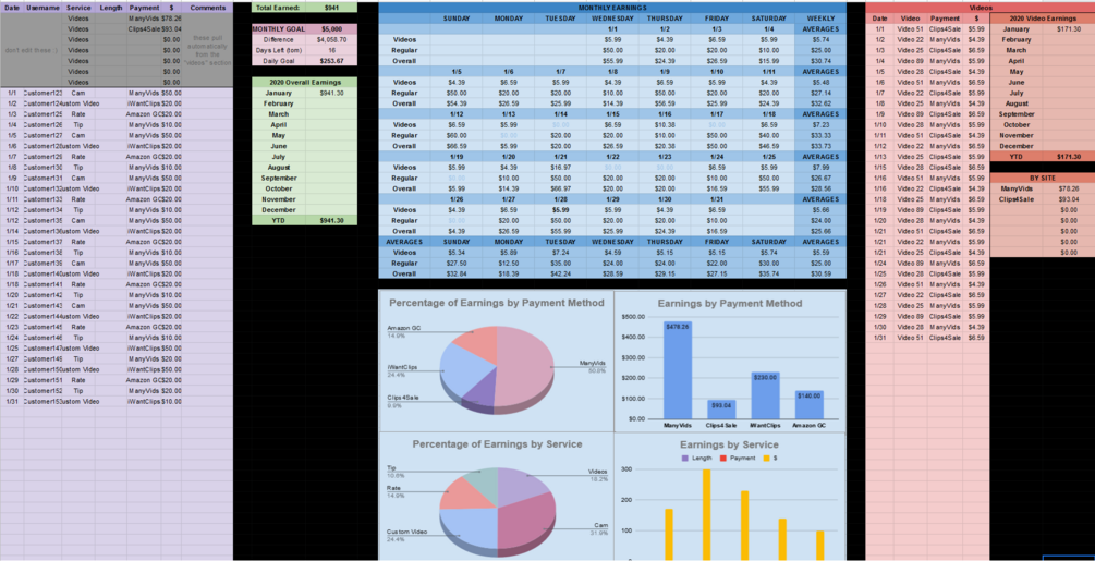 This purchase gives you the Sales Spreadsheet with monthly tabs, a "sales by day of the week" tab, and video sales analysis + the Video Processing Spreadsheet with a video masterlist, processing checklist, and release calendar. You will also receive the future yearly spreadsheets by email, for free. All spreadsheets are made on Google Sheets - Excel is not required!